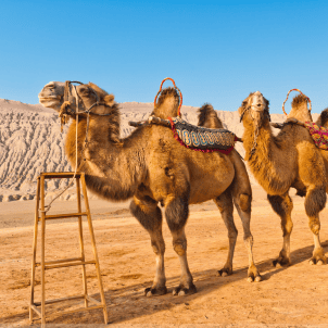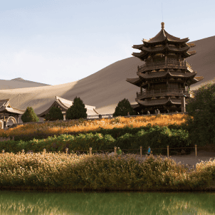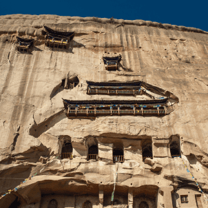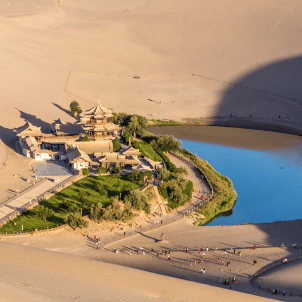 You will go to visit 【Mingsha Sand Dunes】 and【Crescent Lake】 in the morning. Here, you will mount a camel for a caravan ride to the sand dunes for outstanding views of desert scenery that awed ancient tradesmen from Central Asia, Persia and Arabia as well. After lunch you will go to visit the great Yadan. 【Yadan】 is a rock ridge feature caused by wind and water erosion, which is found in dried-up riverbeds and may also be found in deserts. They can form very unusual shapes and some resemble various objects, even people.